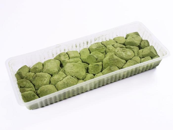 鮮やかな緑色の抹茶入りきなこをたっぷりまぶしました。