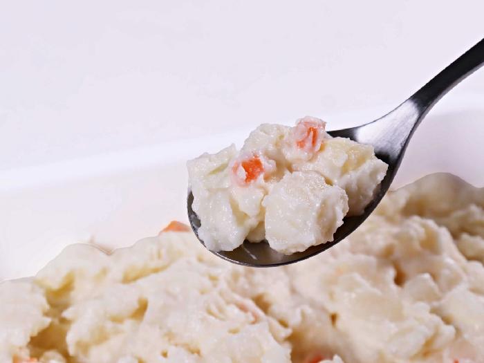 じゃがいも(国産)、マヨネーズ、たまねぎ、にんじん、調味液(還元水あめ、水あめ、食塩、卵黄、醸造酢、砂糖、酵母エキス)、砂糖、食塩、醸造酢、香辛料/調味料(アミノ酸等)、酢酸ナトリウム、グリシン、増粘剤(キサンタンガム)、香辛料抽出物、(一部に卵・大豆を含む)