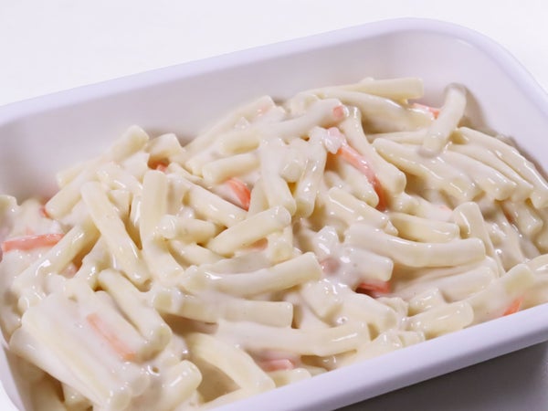 マカロニ(国内製造)、マヨネーズ、にんじん、砂糖、たまねぎ、調味料(還元水あめ、水あめ、食塩、卵黄、醸造酢、砂糖、酵母エキス)、食塩、醸造酢、香辛料/増粘剤(加工でん粉、キサンタンガム)、調味料(アミノ酸等)、グリシン、香辛料抽出物、(一部に卵・小麦・大豆を含む)