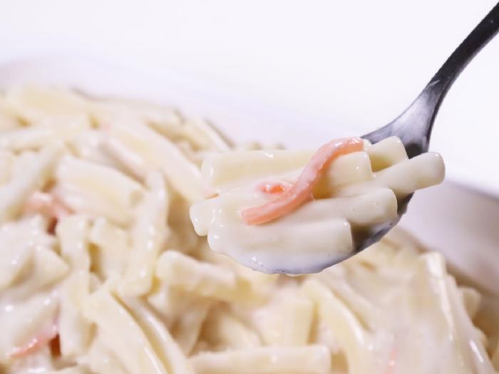 具材には玉ねぎ・にんじんを使用。味付けは強すぎることなく、うまみのあるキユーピーのマヨソースで和えています。