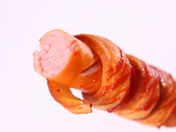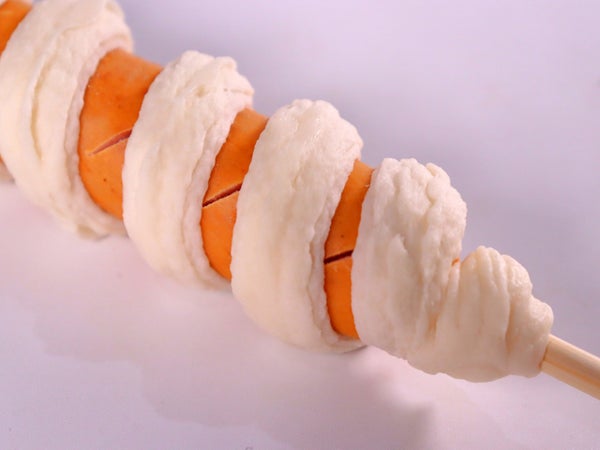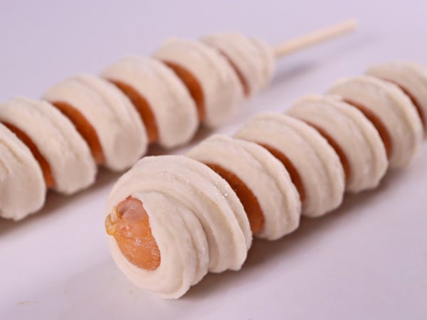 ぐるぐる巻きの見た目がインパクトな串フランク。