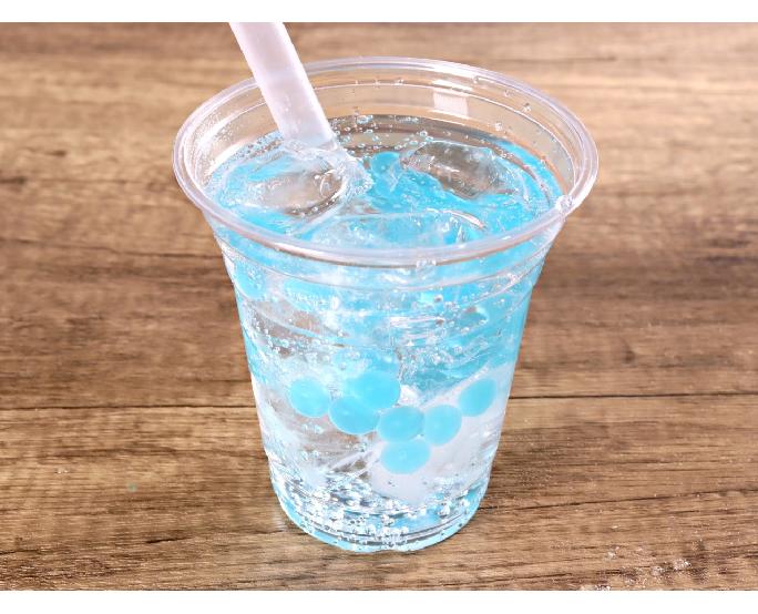 海藻由来の膜にたっぷりのソーダ味のジュースを包みシロップ漬けにした、食べるジュースです。口の中でプチっとはじける新食感とポップな見た目で、映えるメニューにぴったりです。温度に左右されないので、冷たいメニューにも温かいメニューにも使えます。炭酸系やカルピスなどの飲み物や、かき氷・ヨーグルトなどのデザートトッピングとしても重宝します。