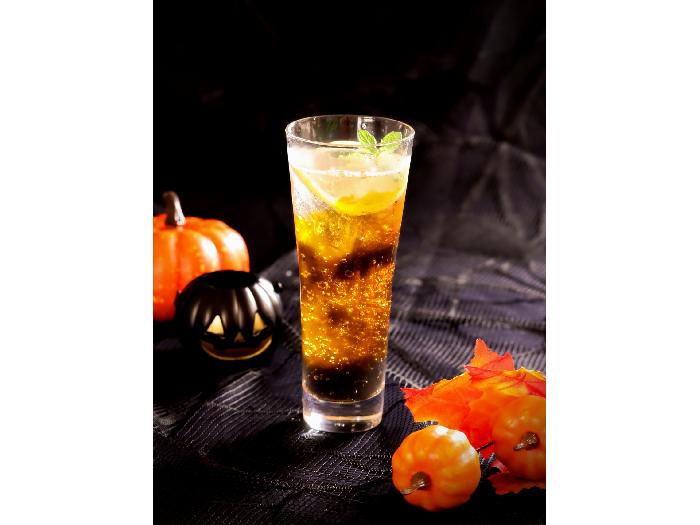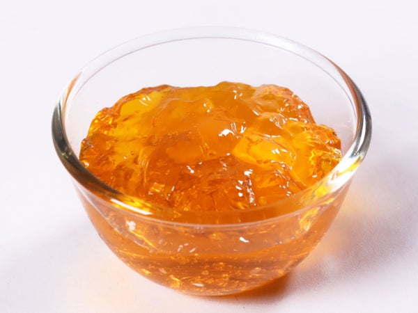 オレンジ果汁を使用し、ミモザをイメージしたカラフルなクラッシュジュレ。フォトジェニックなキラキラスイーツや飲むゼリー入りドリンクに。