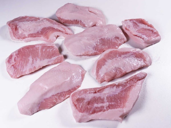 国産豚の頬から首にかけてのお肉です。ジューシーでコクが深く、味わいがあるので、ステーキ、唐揚げ、チャーシューなど、色々なメニューに使用できます。