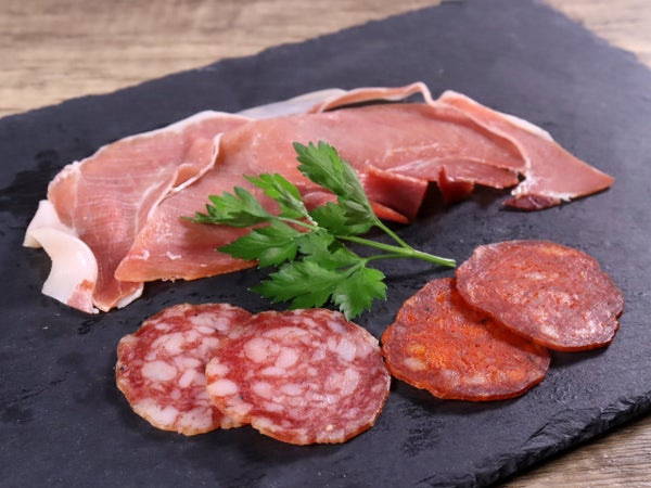 【ハモンセラーノ】豚もも肉、食塩/発色剤(亜硝酸Na、硝酸K)、酸化防止剤(クエン酸Na)、甘味料(マルトデキストリン)【サルシチョン】豚肉、食塩、糖類(グルコースシロップ、砂糖、デキストロース)、デキストリン、香辛料、粉末酢/香料【ショリソ】豚肉、パプリカ、食塩、香辛料、糖類(砂糖、デキストロース)、粉末酢、デキストリンにんにく/香料