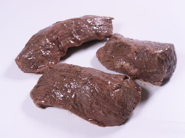 中は淡いピンク色。胡椒の風味と下味程度の味を入れてありますが、お好みのソースなどで仕上げるといいでしょう。