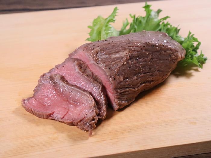オーストラリア産牛もも肉のブロックを真空低温調理でやわらかく仕上げました。