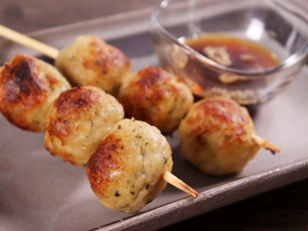 さっぱり生大葉をたっぷり使用しt香る団子状鶏つくねを串に刺しました。