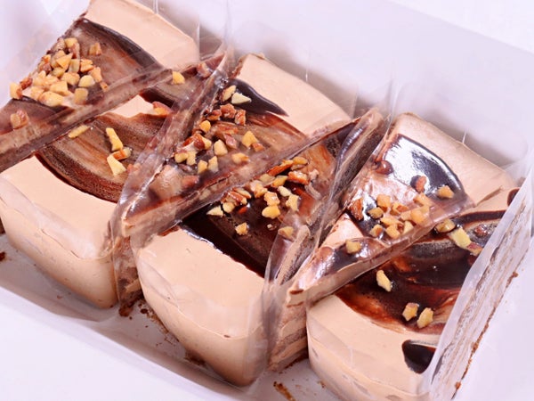 冷凍庫から出した直後でも柔らかく、すぐに食べられるチョコレートケーキです。なめらかなチョコレートクリームにナッツを合わせ、食感にアクセントを持たせました。