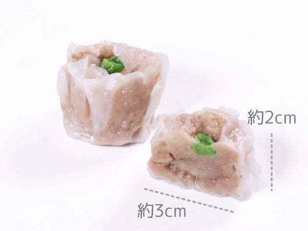 約3cm、小粒のシューマイです。ひとつひとつグリーンピースが乗せられていて、まるでイラストのような焼売の姿をしています。