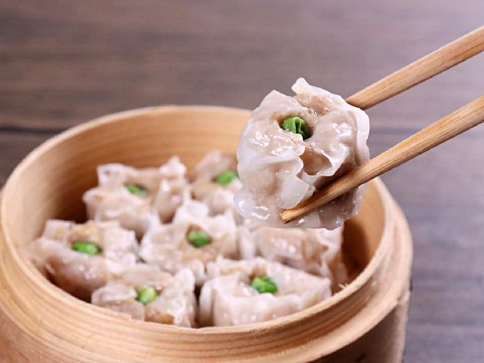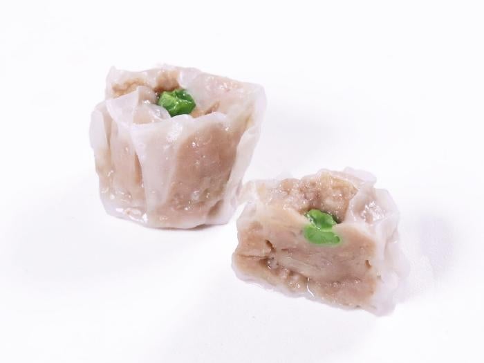 鶏肉と豚肉を使用したシンプルなシューマイです。グリーンピースをトッピングした、メニューに映えるおすすめ商品です。