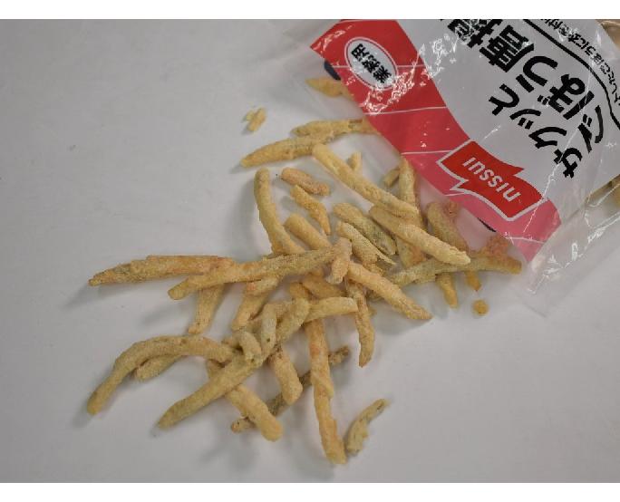 ごぼうの風味を活かすためあえて皮を残したまま細長くカットし、サクサクの衣を付けて揚げました。サクサクの衣にこだわり、時間が経ってもサクサク感が維持します。細長くカットされているので、少ない量でもボリューム感を出す事ができます。