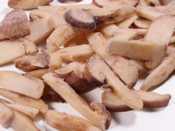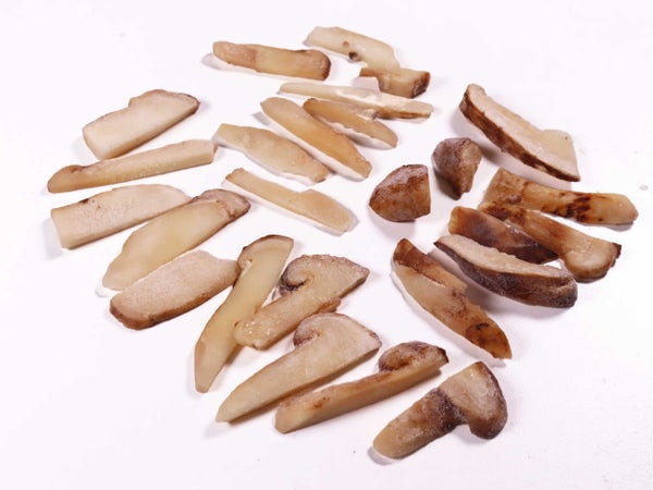 できるだけ、松茸らしい形を残すようにしていますが、写真のように原料によるばらつきがあります。