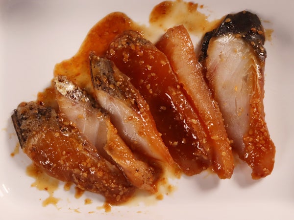 さわら(韓国産)、醤油、みりん、砂糖、酒、すり胡麻、醸造酢、食塩/増粘剤(キサンタンガム)、酸化防止剤(V.C)、(一部に小麦・大豆・ごまを含む)