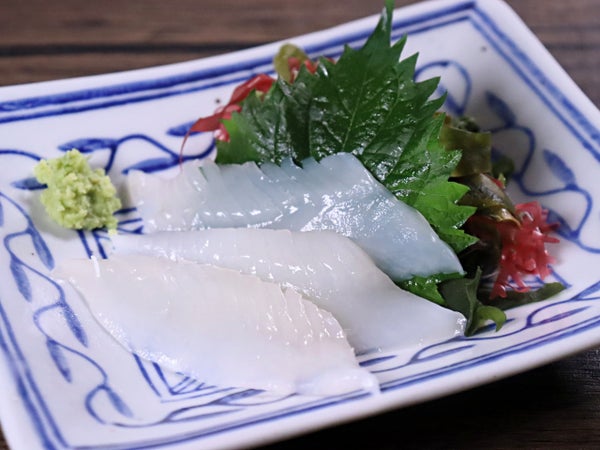 あかいかを刺身・寿司ネタ用にスライスしました。あかいか特有のねっとりとした食感が特徴です。解凍するだけで提供ができ、利便性に優れた商品です。