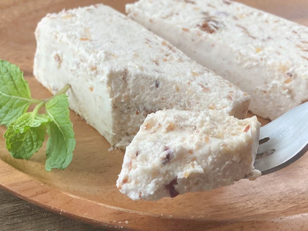 北海道産のクリームチーズや牛乳にこだわった、凍ったまま食べるイタリアンドルチェです。ローストアーモンドとラム酒香る6種のフルーツを混ぜ込んだ、大人の味わいです。カッサータとはイタリア・シチリア島の伝統菓子で、アイスケーキのようなスイーツです。