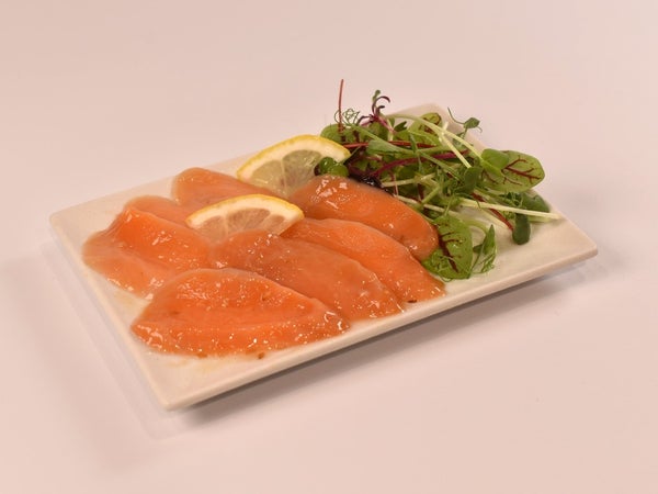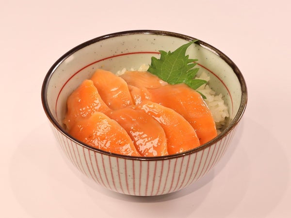 トラウトサーモンのスライスと特製の塩だれを個包装パックにしました。解凍するだけで提供ができます。小さめの丼・そのままおつまみとしてお使いください。