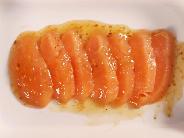 1パックに6~7切れ程度。身が重なっているところは塩だれがついていないことがあります。