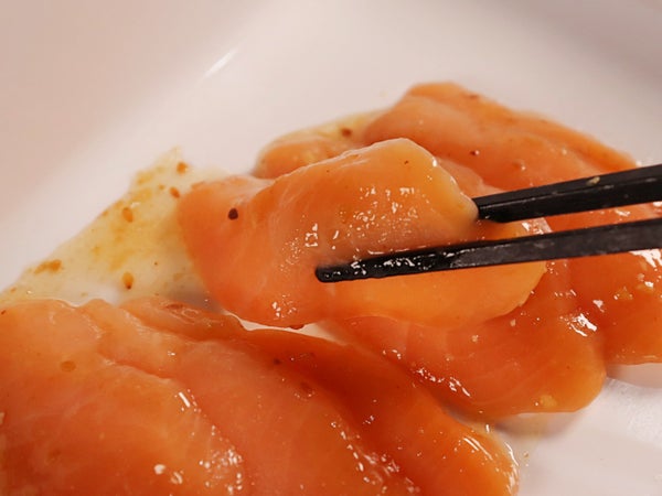サーモンは、振り塩をして熟成させてあり、しっとりやわらかい。