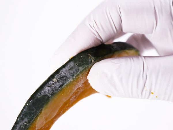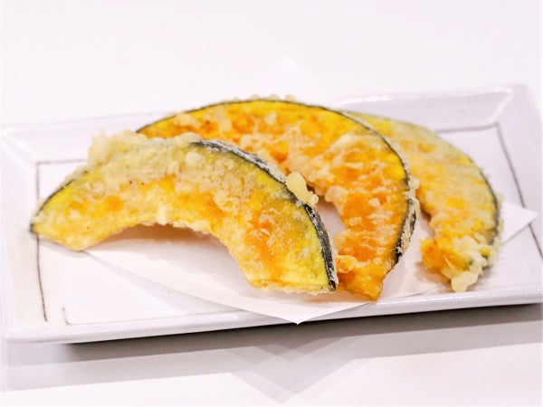 品種の特性とスチーム加熱工程により、果肉がやわらかくなっていて天ぷら用が一番のおすすめ用途です。網焼きなどは崩れるためあまり向きません。