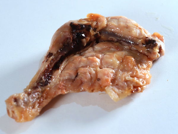US産の骨付きもも肉を、国内工場で下味程度の味付け後素焼きをしました。焼成前の原料重量サイズは、220-240gを使用して、焼成後はおおよそ150g-180です。トマトソースや照り焼きソースを塗ったり、お皿に敷いて提供いただく事も可能です。