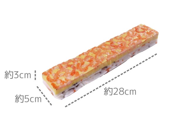 赤いむきえびを敷き詰めた、アピール感の強い海鮮すり身オードブル品です。