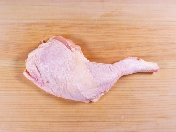 1本300~350g。大ぶりの骨付き鶏もも肉です。
