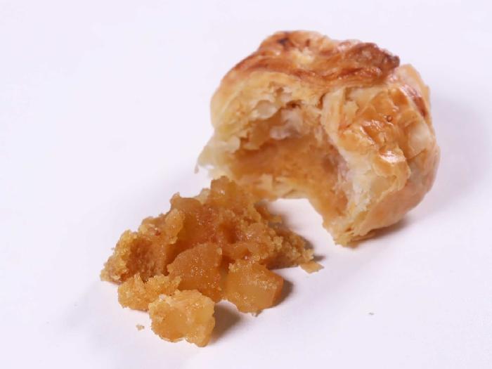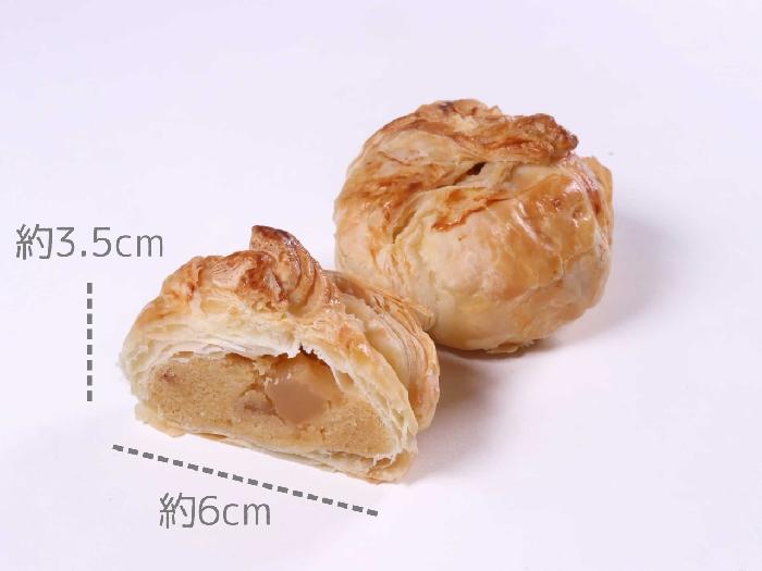 ダマンド生地とシナモンパウダーをまぶした林檎ダイスを、パイ生地でひとつひとつ手包みし、ふっくらと焼き上げました。レンジアップすることで、パイの食感と林檎の爽やかな味わいをより一層楽しめます。
