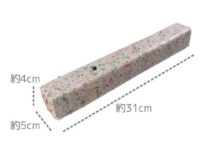 赤、緑、黄色。白い生地に色とりどりの具材がきれいな、海鮮すり身オードブル品です。