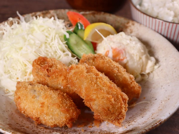 定食メニューの目玉を張れて「この店のカキフライ、でかい!」のお客様に印象付ける大粒カキフライです。