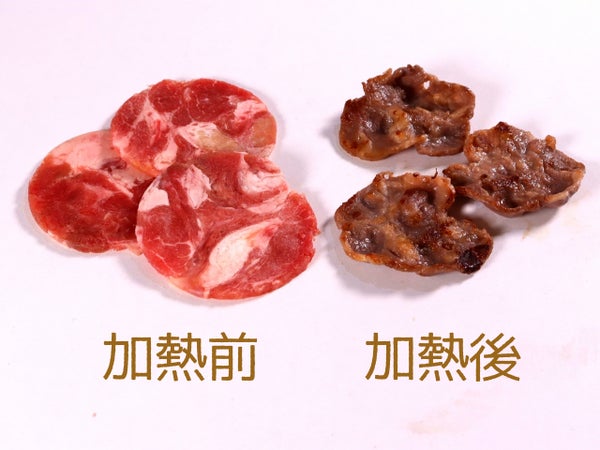 結着部位によって焼き縮みが違うので、焼き上がりの形はまちまちです。