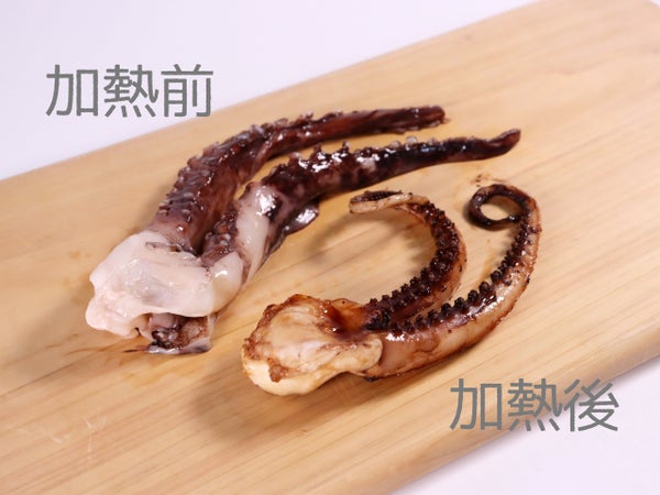 加熱後は水分が出て縮みます。