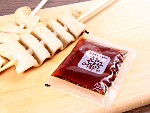 韓国屋台定番ワンハンドおでん-希釈のスープ付商品です。スープを吸っておいしい韓国おでんが簡単にできます。揚げてコチジャンソースを絡めても◎。