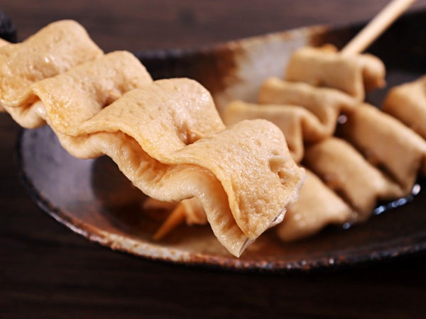 すり身にスープが染み、すり身からスープにうまみが出て、じんわりおいしい練り物おでん串です。
