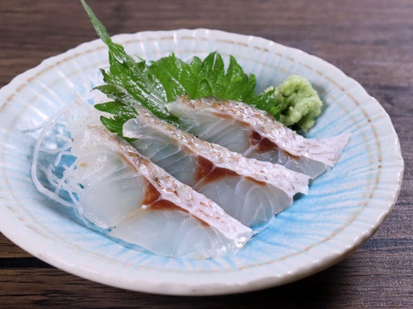 皮目を湯引きしてあります。やや薄めの6gスライス。カルパッチョなどの刺身サラダメニューにもお使いください。