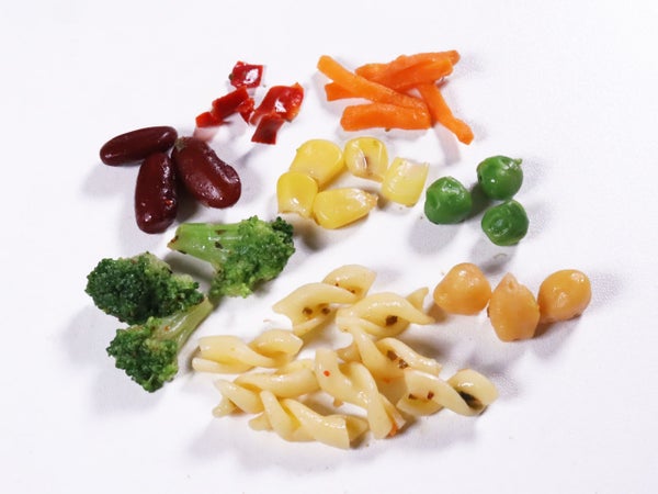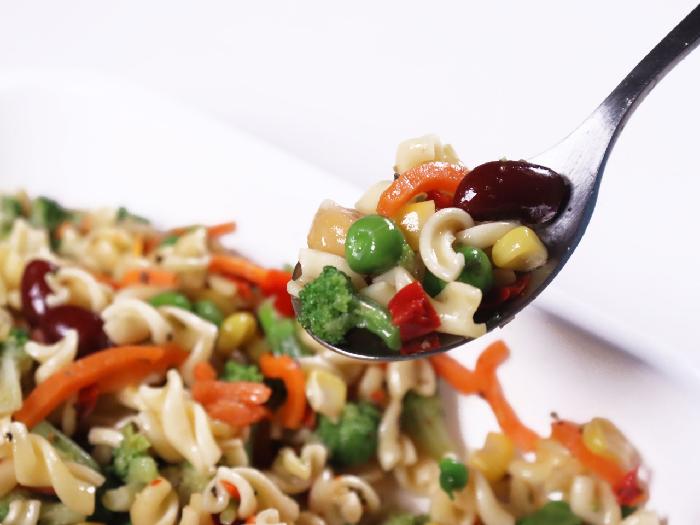マカロニ、ブロッコリー、コーン、水煮人参、レッドキドニー、ガルバンゾ、グリーンピース、赤ピーマン