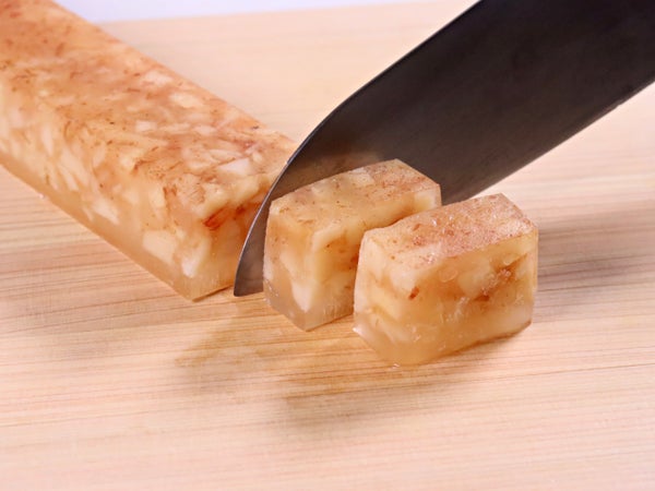 煮凝りだしのなかにはかつお節をちりばめ、土佐煮のような風味を味わえるようになっています。