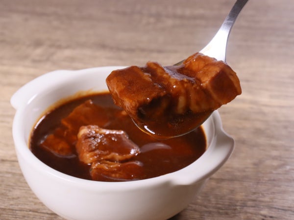 牛バラ肉を大きめサイズにカット後、デミグラスソースで柔らかく煮込みました。食べ応えのある肉感サイズと柔らかい食感の両方を追求しました。