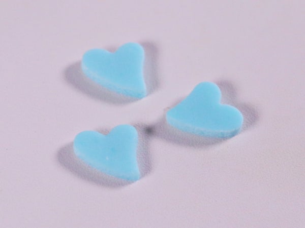 ケーキやお菓子など、スイーツを可愛くカラフルに彩る、砂糖で出来た水色のハート型のトッピング商材です。水分の多い食材にトッピングすると、時間の経過とともにクラフトシュガー自体の食感が軟らかくなりますので、できるだけ直前にトッピングしてください。