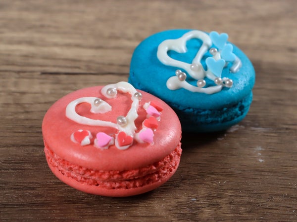 砂糖でできた、小さなハート型のトッピング商材です。少しななめになった形をしています。