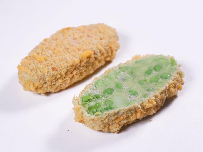 ほぼ枝豆のかたまり!ぎっしり詰まった枝豆をサクサクの衣といっしょにまとめてかじるフライです。