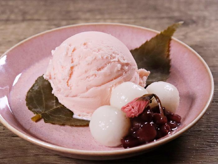 桜餅をイメージさせるほのかな塩味と香りを感じる、春にぴったりの季節のアイスです。甘さ控えめでさっぱりとした風味は和のメニューに合います。