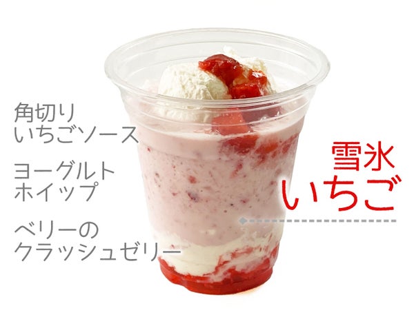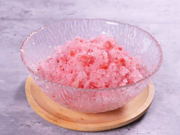 高度な製氷技術で作られた味付きかき氷に、刻んだいちご果肉を混ぜ込みました。
