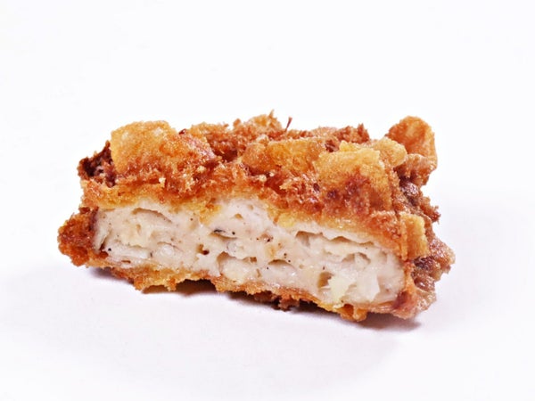 揚げ物としてはサッパリ感があるのでオススメで提供しています。またコーンフレーク使用と銘打って変わり種としても面白い存在です。肉々しさもあるので怪獣と全面に出して提供させて頂いてます。
