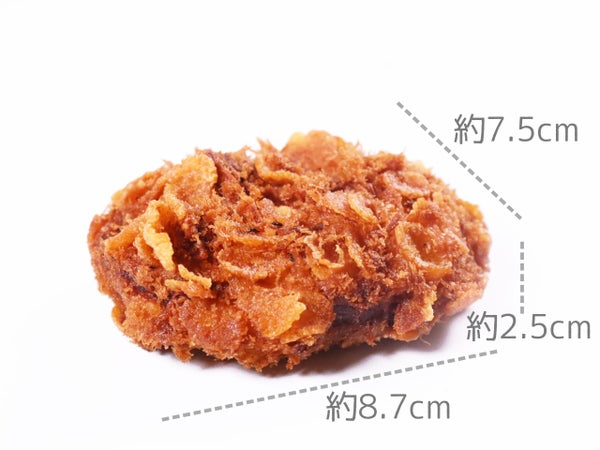 揚げると色は見えなくなりますが、立体感のある衣が目を惹きます。サイズは目安です。
