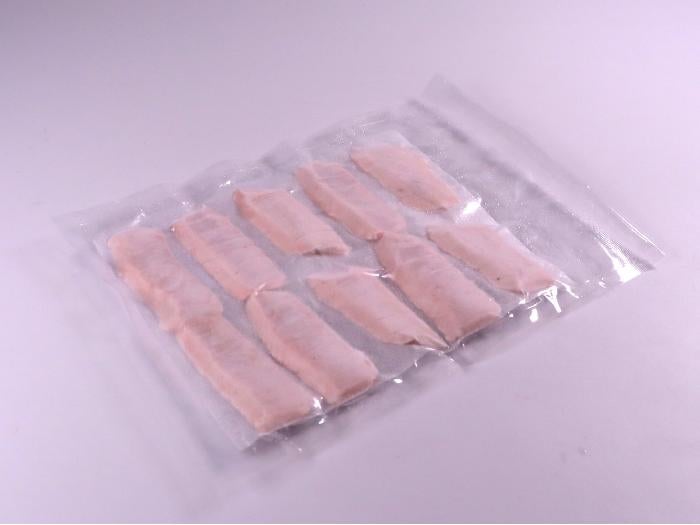 キハダまぐろの赤身をお造り用に大ぶりにスライスしました。生のキハダマグロを手切りし、急速凍結することで生マグロのような食感に仕上げました。