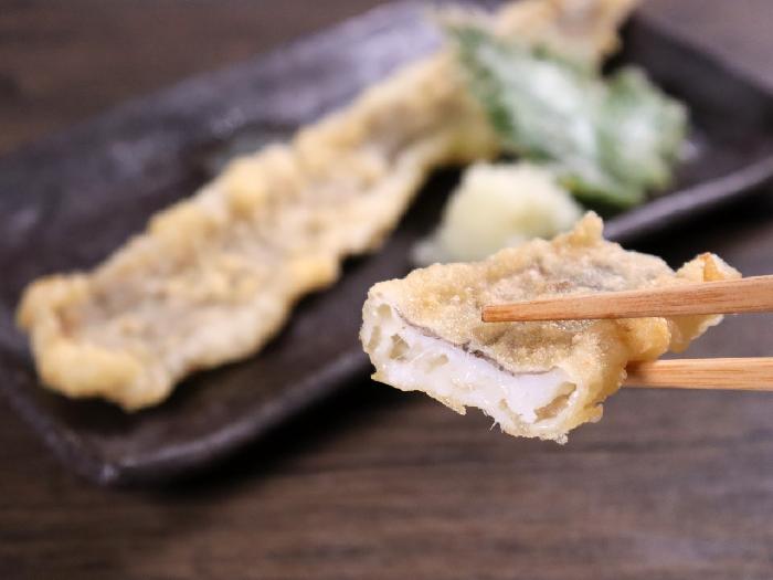 天然の銀穴子を開き、調理しやすいように打粉付けをしました。ロスがなく、天ぷらが形よく揚がります。穴子天丼や天重におすすめです。