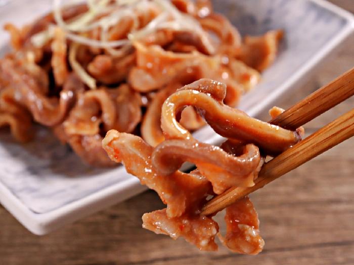 国産豚の胃袋(ガツ)を丁寧に下処理後、ピリ辛味噌で味付けしました。ガツは豚モツですがくさみが少なく、歯ごたえのあるコリコリ食感が楽しめます。調味済みの為、解凍後そのまま提供できますが、オニオンスライスやきゅうりやもやしなど野菜と合わせてもおいしく楽しめます。