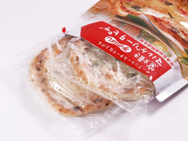 直径約16cmのミニピザです。ちょっと塩味強めで、スナックやおつまみに軽くつまめるサイズです。
