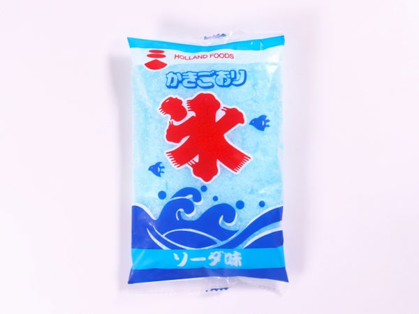 長崎県壱岐市で30年以上にわたって昔ながらのかき氷を製造しているオランダフーズ。九州エリアでは常識の「袋かき氷」スタイルのソーダ味かき氷です。